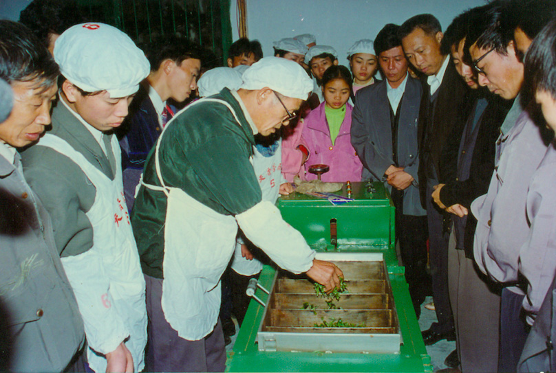 • 1996年9月,名優(yōu)高檔茶加工成套機(jī)械在國(guó)家科委舉辦的“星火計(jì)劃實(shí)施十周年暨‘八五’農(nóng)業(yè)科技攻關(guān)成果博覽會(huì)”中被評(píng)為優(yōu)秀項(xiàng)目。同年,茶師楊金根在福建省泉州市安溪縣天香茶廠,使用上洋茶機(jī)現(xiàn)場(chǎng)制茶,獲得一致好評(píng)。