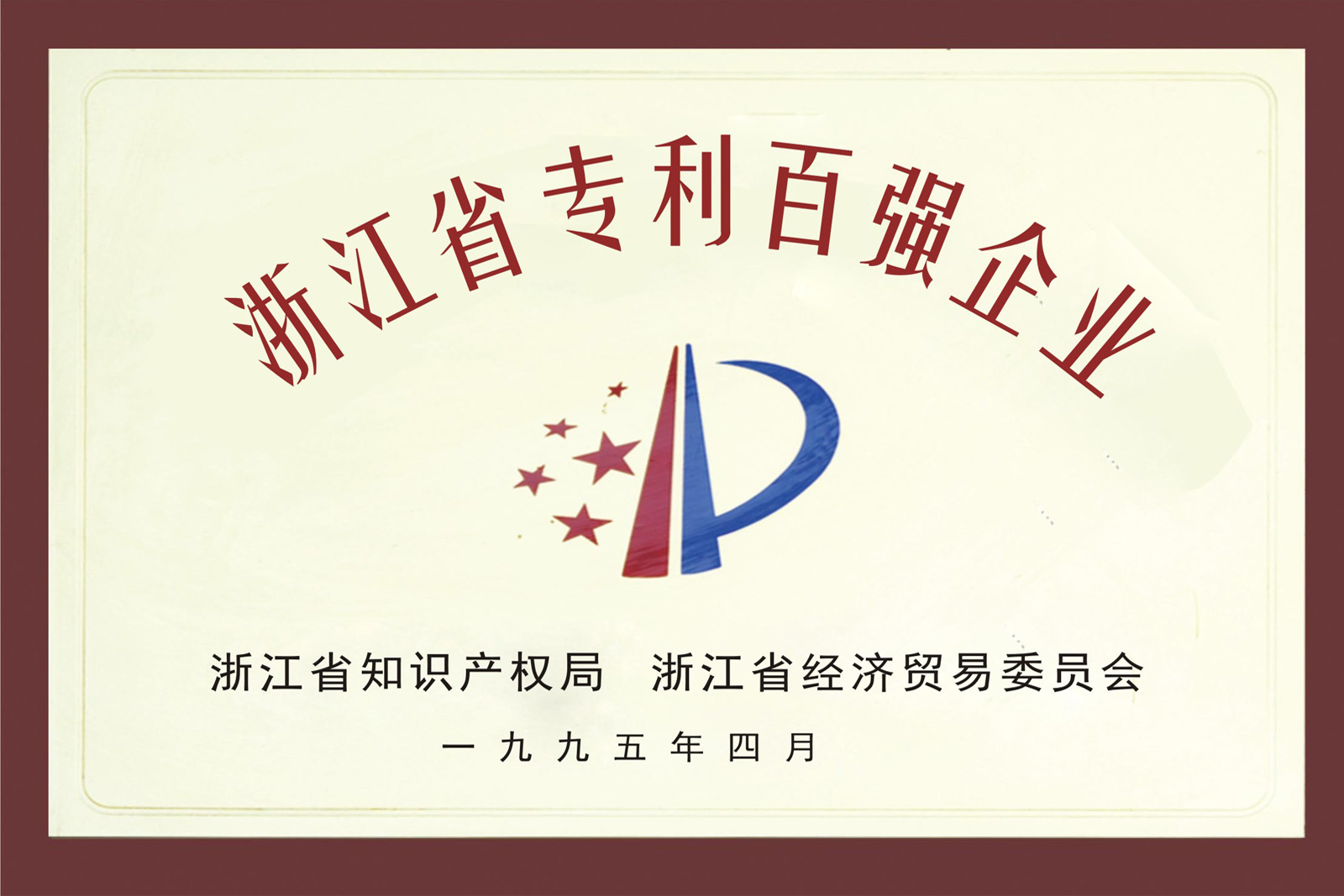 • 1995年4月,公司被評(píng)為浙江省專利百?gòu)?qiáng)企。