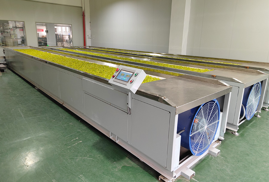 作業(yè)原理:?jiǎn)螌邮浇Y(jié)構(gòu),機(jī)組采用的集中控制系統(tǒng)可精準(zhǔn)控制鼓風(fēng)時(shí)間、風(fēng)量、溫度、攤?cè)~厚度/重量等主要參數(shù),實(shí)現(xiàn)攤青(萎凋)的均勻充分。 利用光電定位系統(tǒng),能有效檢測(cè)茶葉流量,可自動(dòng)控制茶葉進(jìn)入下一步工藝流程。